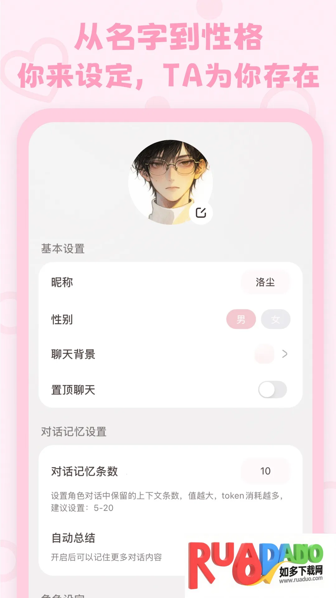 1. 自定义角色:外貌、性格、背景全由你决定,可打造专属私人陪伴。