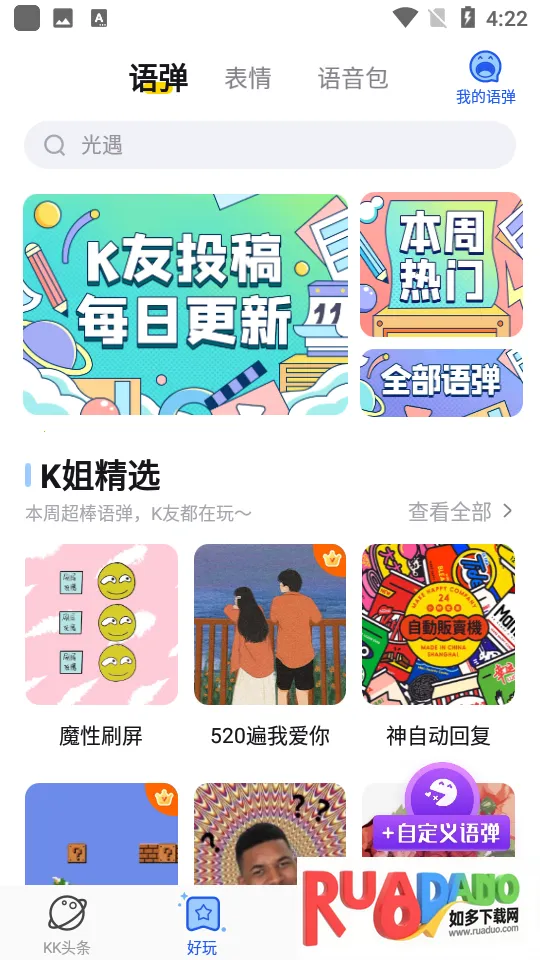 KK键盘是一款趣味十足的手机输入法软件,有丰富自定义文字、KK头条。支持多种输入模式,提供语音包、游戏定制键盘等。能帮用户轻松实现生动有趣的在线互动,让聊天、斗图更欢乐。