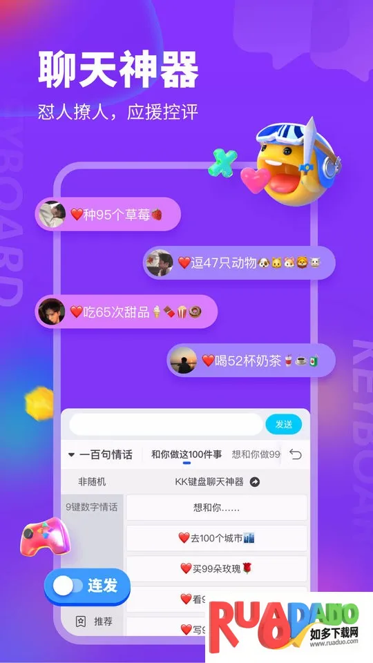2. 聊天神器:聊天场景全覆盖,花样表白、常用弹幕等一键获取,是撩妹汉聊天必备。