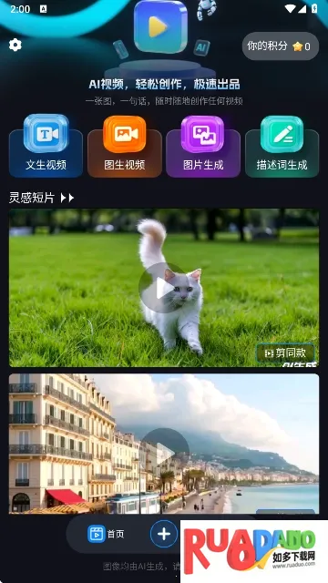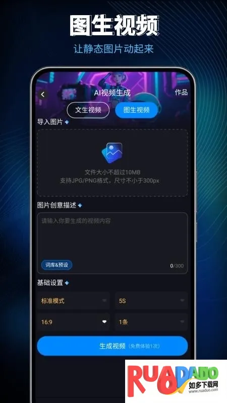 1. 支持图生视频功能,导入静态图片可快速转换为动态视频,实现创意视觉表达。