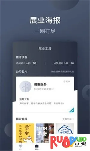 3. 具备一系列展业模块,比如公司名片展业海报业务介绍等。
