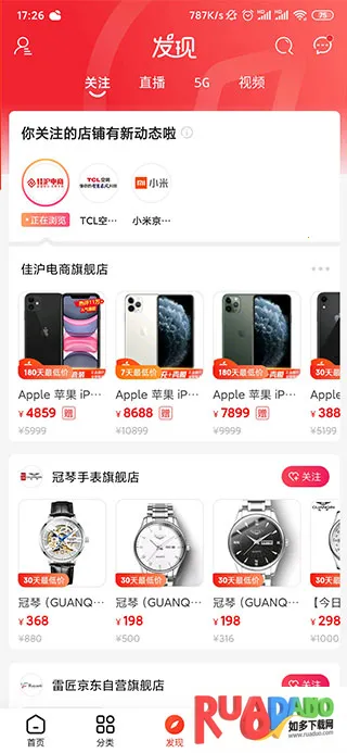 3、而且大家还能关注店铺或者是物品,直接在发现中查看自己的关注;