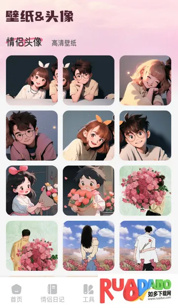 5、点击壁纸,可保留喜欢的情侣头像、高清壁纸等