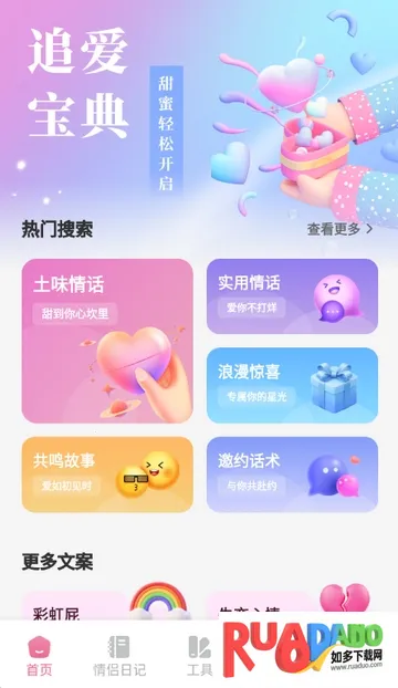 2、进入软件首页,可学习各种实用情话、邀约话术等