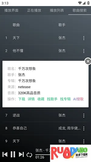 2. 搭载超强多引擎精准搜索技术,能快速抓取全网各类音乐资源,轻松找到想听的歌。