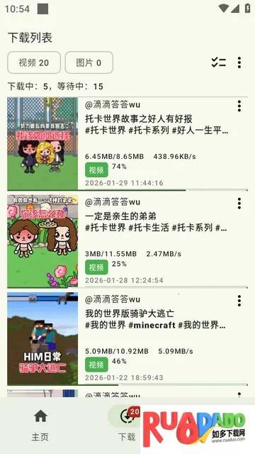 抖下载安卓版是一款抖音短视频下载工具,无广告,界面简洁,下载速度快且自带去水印功能。能保存音乐、短视频,支持批量下载。复制链接粘贴即可一键下载,自动去水印,还可进行视频管理。
