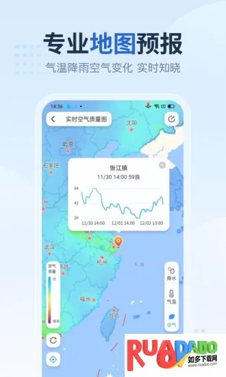 4. 提供空气质量监测,认真呵护您的健康,提供未来48小时及15天空气质量预报,更新空气质量PM2.5等指数预报。