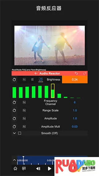1. 精准刻度可精细到帧,对视频剪辑和层精准裁剪,音频剪辑能正确调整并对齐帧。