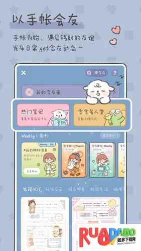 念念手帐全解锁版是治愈系电子手帐软件,解锁所有素材库与笔记本样式。支持自由排版等,有云端同步。兼具可爱手绘风与实用拼贴功能,原创新颖素材免费更新,还能设置密码保护隐私,快来体验。