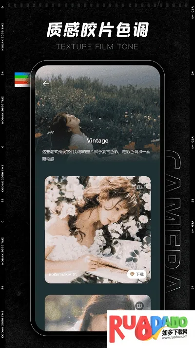 4. 有源于CCD相机的复古滤镜效果,还原真实拍摄体验,带你回到过去。它能让你轻松拍出有质感且具怀旧感的照片,还可自由预览、设置参数、选择滤镜,无论是日常记录还是追求复古风格创作,都能满足,给你带来丰富且便捷的拍照体验。