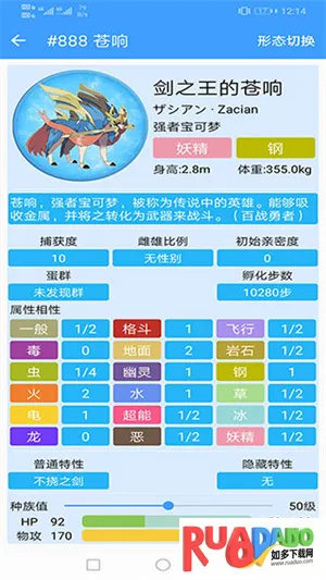 4、点击切换形态功能查看其他形态,浏览该形态下不同的属性资料