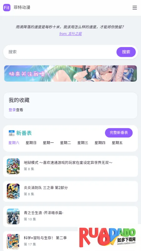 1. 菲特动漫是面向二次元爱好者的专业追番平台,汇集大量正版动画作品,题材覆盖全面分类清晰,能满足各类用户观影需求。