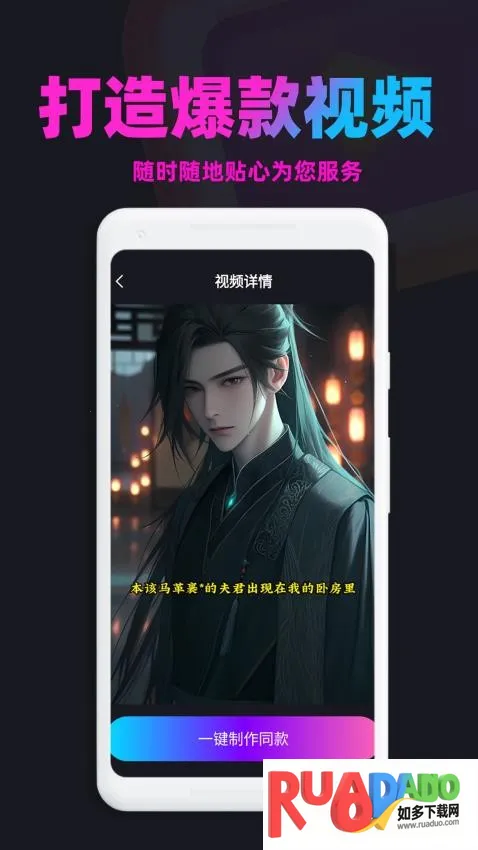 它能让用户轻松创作出高质量推文作品。随时打开手机就能找灵感,输入小说漫画内容,借助丰富功能和多样选择,快速生成想要的推文内容与视频,打造爆款视频不再困难。