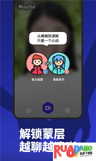1. 它采用模糊视频社交模式,初始画面模糊,随互动深入逐步清晰,增添趣味与神秘感。
