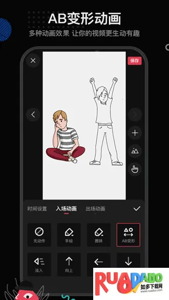 2. 集创作编辑与导出于一体,自由作画,随心编辑每一帧画面,还能添加文字、设置AB变形效果等。