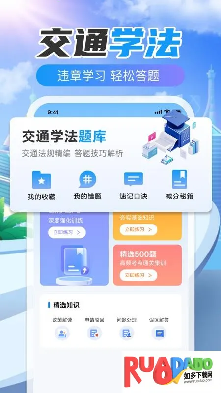 4 能助力车主学习交通法规,拥有丰富题库,涵盖交通法规精编内容与答题技巧解析,让交规学习轻松高效。