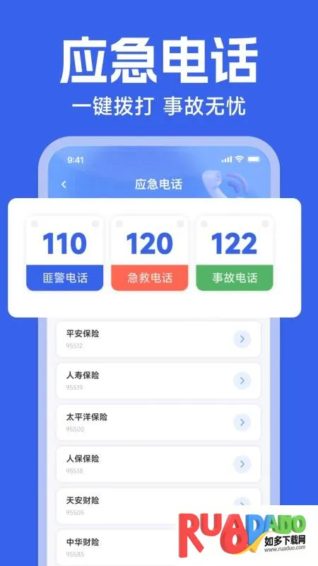 2 整合覆盖急救保险交通事故安全报警等多场景的应急电话。