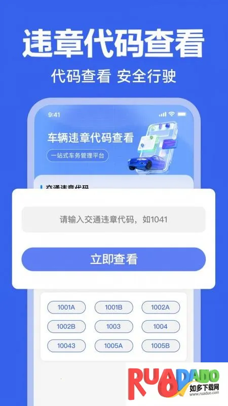 123违章代码速查是一款交通违章查询软件,能通过搜索查看各类交通违法。界面简约易上手,还提供多种交通服务。可详细解读信息、查询车辆常识,操作免费,同步油价,整合应急电话,助力交规学习等,是车主贴心助手。