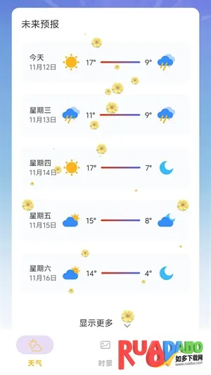 2. 多日天气预览,支持未来一周天气趋势查看,方便提前规划出行与衣物搭配。