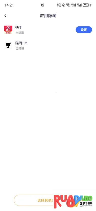 4、再一次点击隐藏应用即可发现已经添加在其中,点击设置;