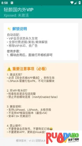 2. 需搭配LSPosed框架使用,突破应用内会员限制,操作简单易上手。