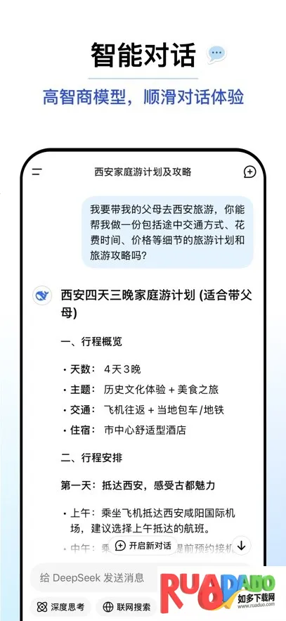 2. 它搭载深度思索功能,可针对提问多方面分析得出结论,对话能力强。