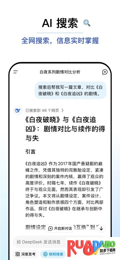 1. 迪普西克能一键搜索查询小说影视、学术讨论等各类内容。