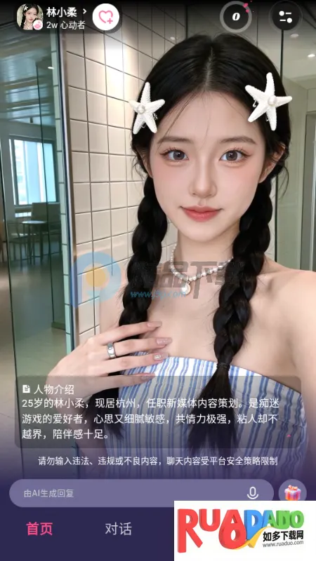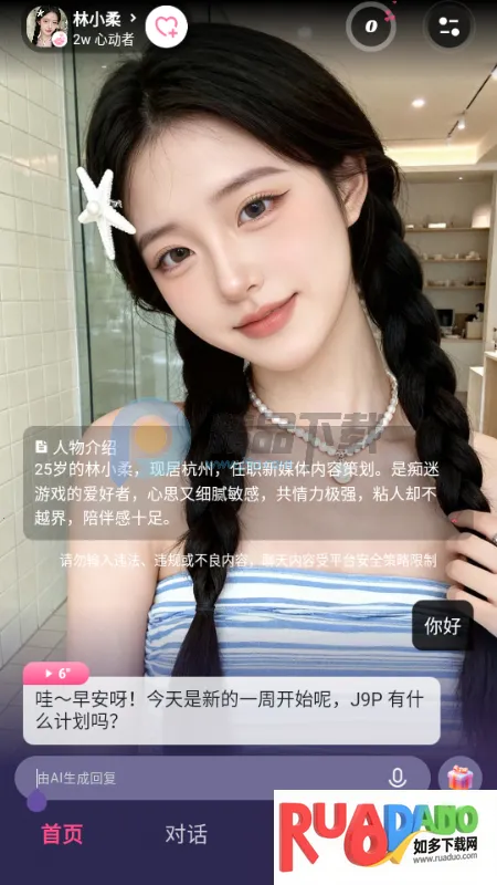 2. 为每位虚拟伴侣打造独立生活轨迹,有专属人生剧本,关联真实城市天气温度,每时每刻都有鲜活动态。