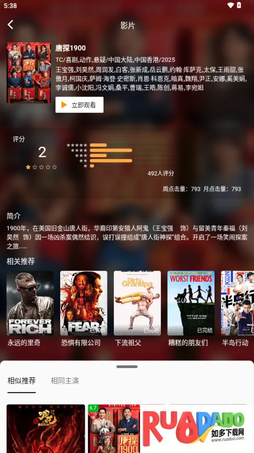 2. 界面设计简约大方,全程没有广告干扰,营造纯净的观影环境。