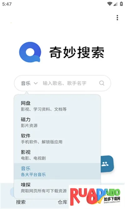 奇妙搜索是一款手机搜索工具,聚合30多个API接口,能搜影视、辅助、漫画小说等资源。支持多渠道下载,资源丰富免费且不断更新,界面简洁无广告,还能智能推荐,满足多样搜索需求。