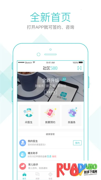 社区580是受中国医药教育协会委托的社区医疗服务平台,为居民与社区医院搭建沟通桥梁。有健康咨询、帐号管理等功能,涵盖签约、咨询、预约等多项服务,还能记录健康数据,助力提升基层医疗效率。