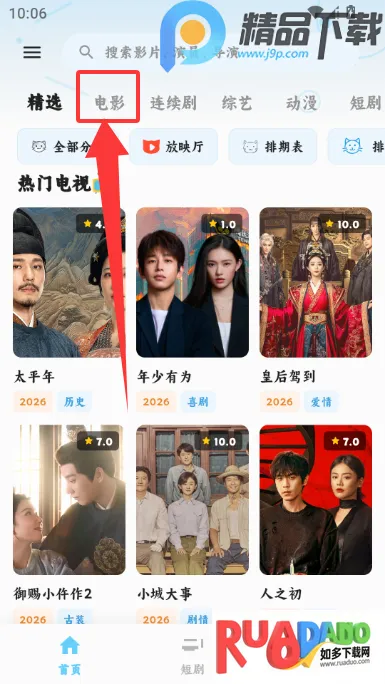 1、进入首页点击上方电影进入专区