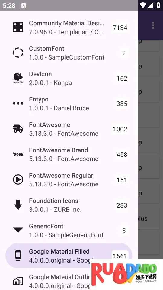 安卓图标库Android Iconics最新手机版是图标更换与修改工具,能改系统图标包等。服务类型多,操作简单,图标高清,占存小。下载后打开可直接用,点菜单按钮查看图标,支持搜索,能满足个性化需求,提供多种美化功能。