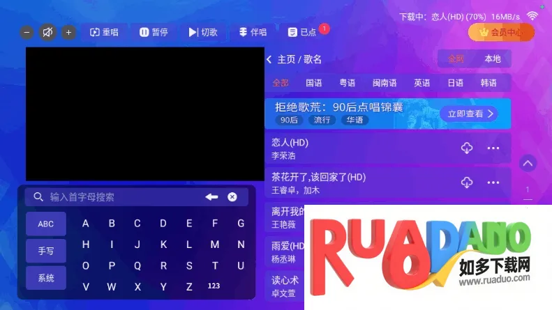 3、用户可以通过分类,歌星,歌名等方式进行筛选。