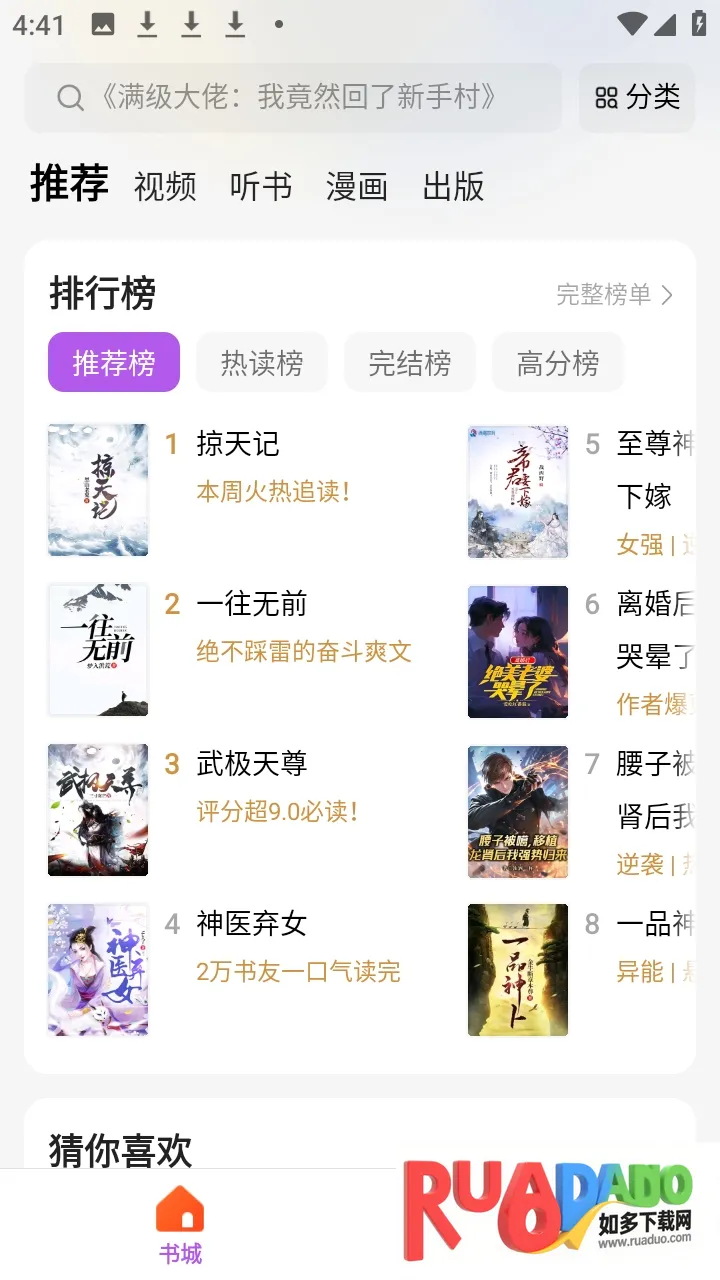 2. 可一键缓存喜欢的章节到本地,无需登陆,打开即干净书架与推荐页。