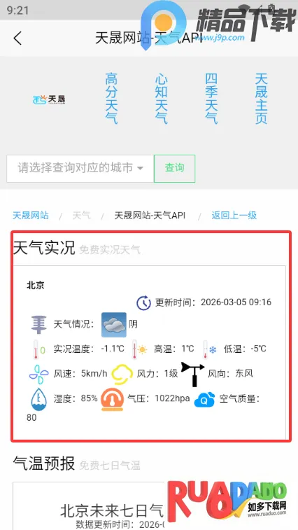 4、查看当前的天气实况
