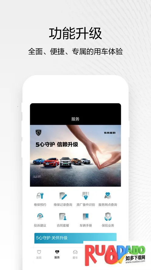 1. 成为东风标致车主后,在线预约维保和原厂备件识别,无需排队,用车更便捷。