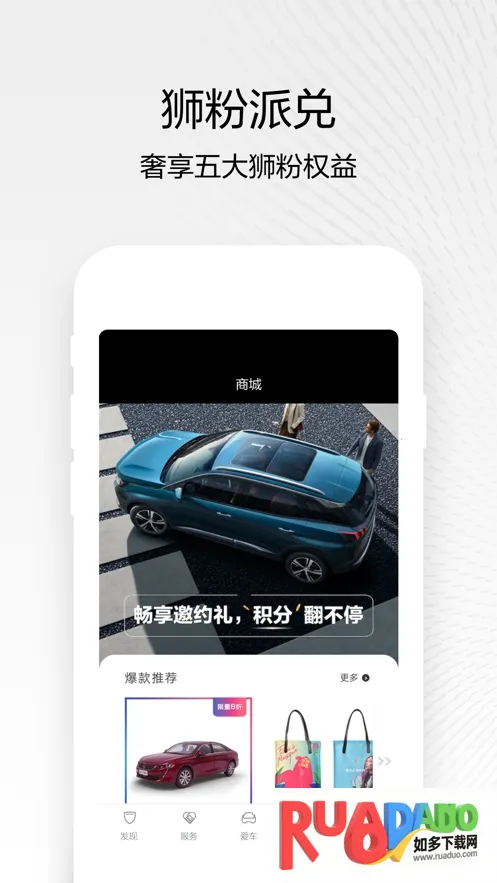 3. 软件介绍东风标致核心亮点,支持个性化配置并订购爱车,还有适用的购车指南,省心选购专属爱车。