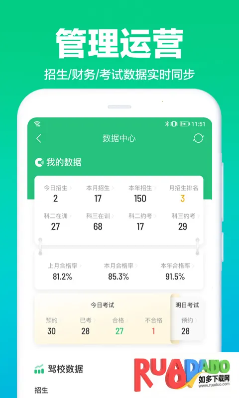 1. 能实时掌握学员档案、招生统计等多方面信息,便于驾校管理。