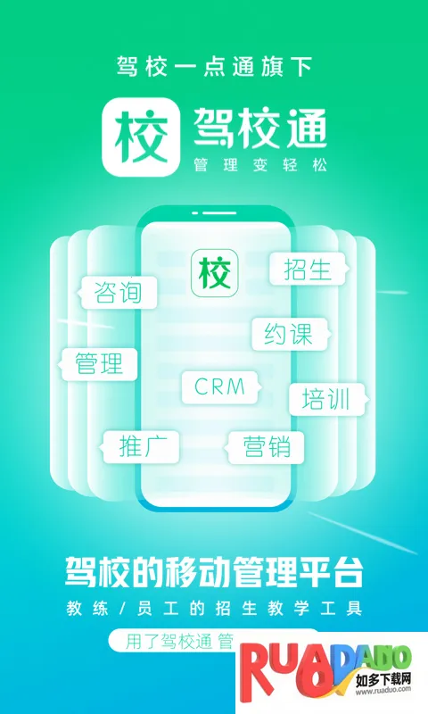 驾校通招生管理帮手安卓版是专为驾校打造的软件,集招生推广、教学培训、统计报表等功能于一体。能帮驾校及教练解决招生难题,提升管理效率与服务质量,还有丰富实用功能及实操视频助力驾考培训。