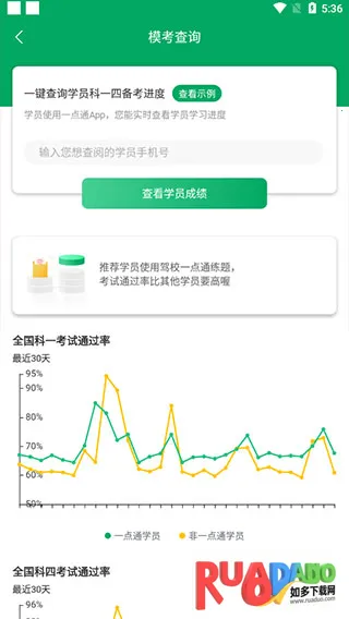 5、输入学员的手机号,可以轻松一键查询学员科一到科四的备考进度;