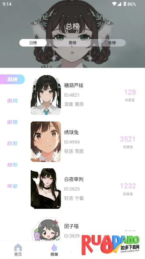 2. 操作简单且有参考案例,用户可快速查看不同风格的优质案例排行榜单,获取灵感。