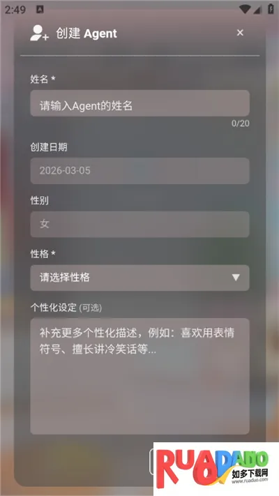 2、在这里选择智能体性别,还有名称;