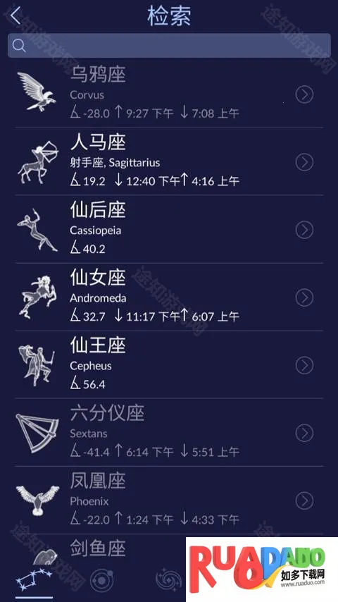 3、点击屏幕左下角搜索标签,可以直接搜索想要观看星座或者恒星;