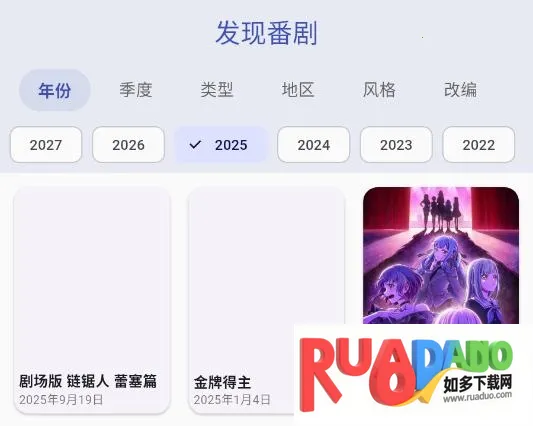 2、发现番剧可以根据自己的喜好来进行挑选,比如类型、季度、地区、风格等。