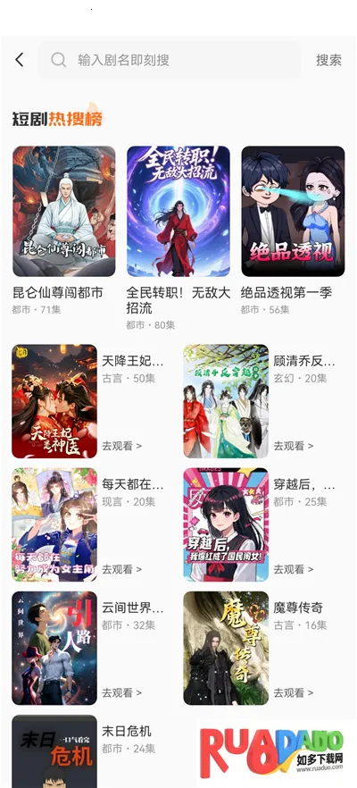 免费看漫剧APP是免费优质的漫剧软件,有都市、玄幻等多样资源,全免费无广告,画质高清。还有小说板块。无需账号,按类型或剧名筛选搜索即可观看,集数可切换,短剧题材丰富,适合碎片时间,全程免费。