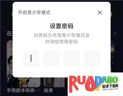 2、设置一个四位数的密码,这个密码为关闭青少年模式及时间锁常用密码。