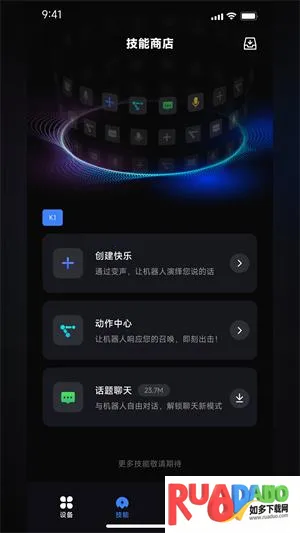 2、内置技能商店,提供动作库及语音对话下载。