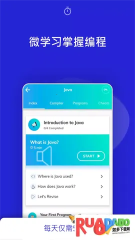 1、有着全面的编程学习课程,包含多种编程语言,通过简短交互课程激发初学者兴趣。