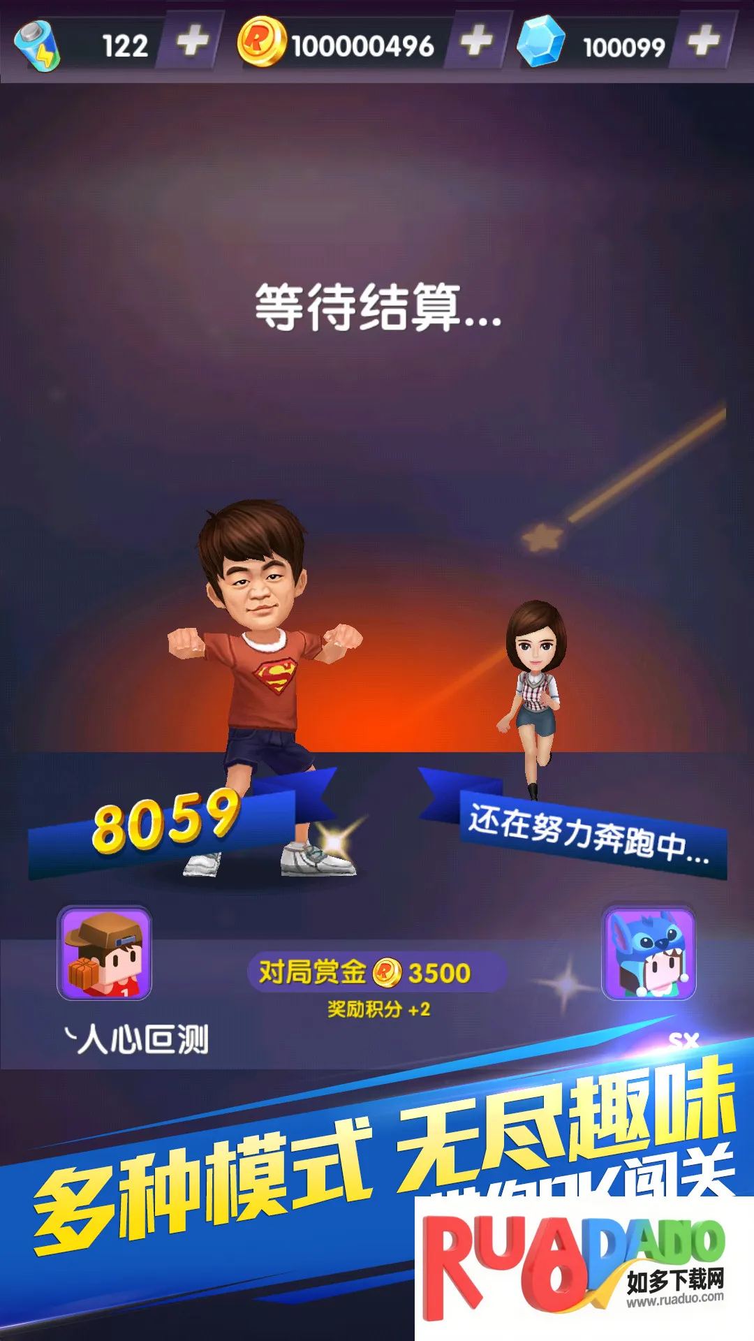 2. 游戏背景以节目实地场景为原型,有关卡和无尽两大模式,包含撕名牌夺宝箱等多种特色玩法。